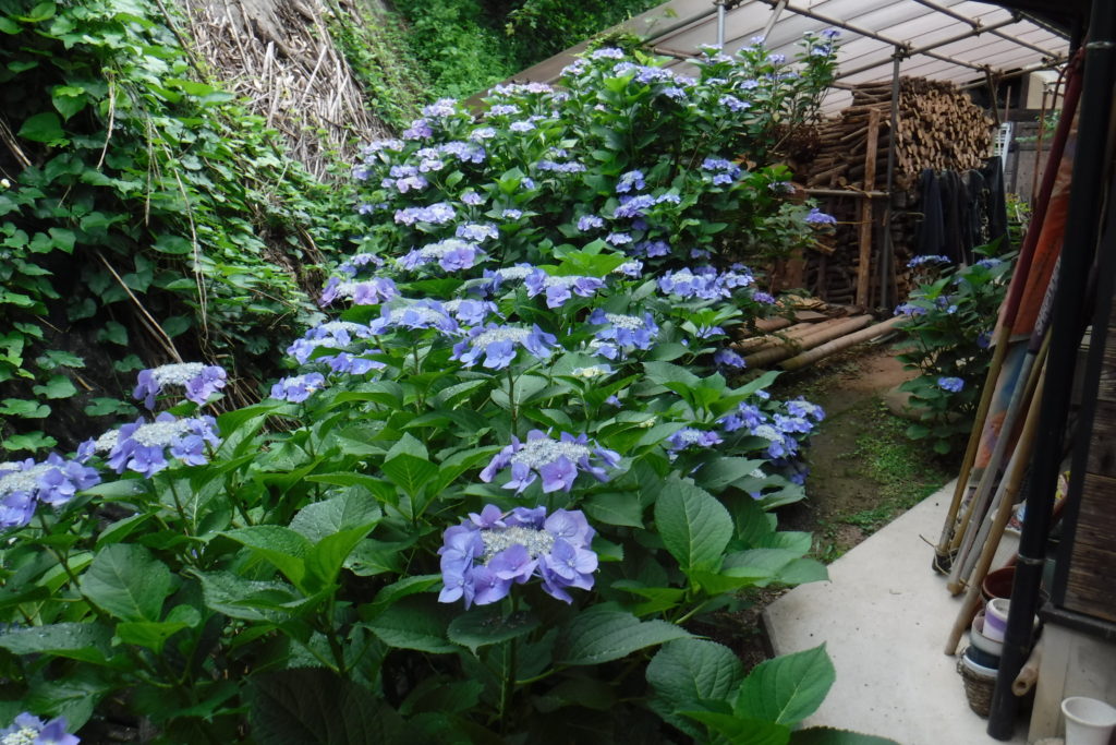 我が家の裏道は狭いのに、アジサイが成長してますます狭くなってしまいました。