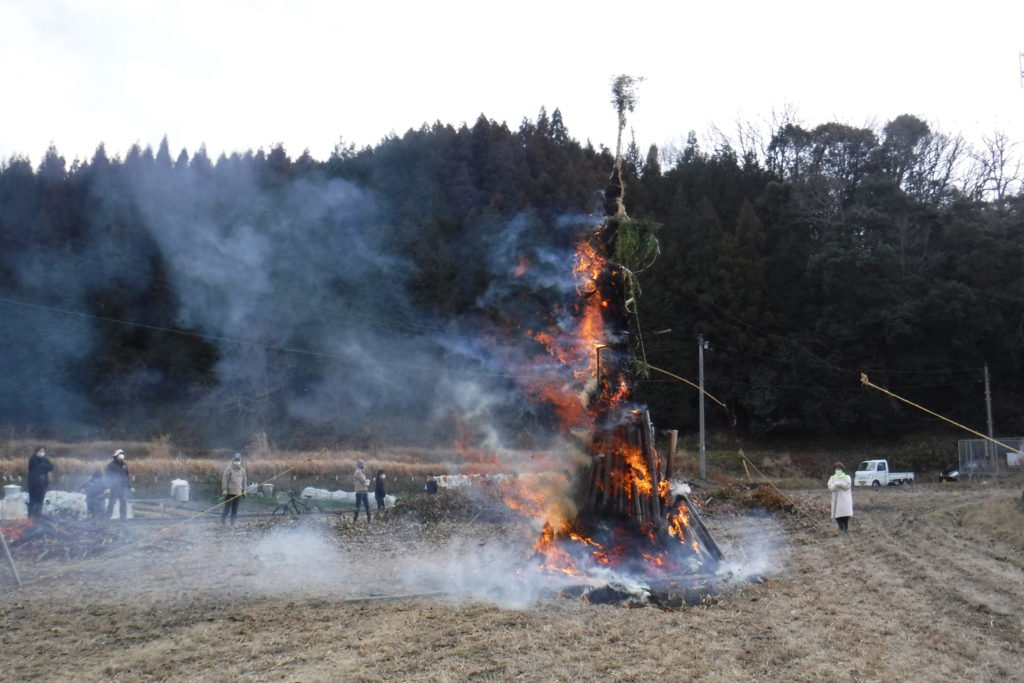 周囲の地区では中止となった「とんど」ですが,小舟木はやりました。